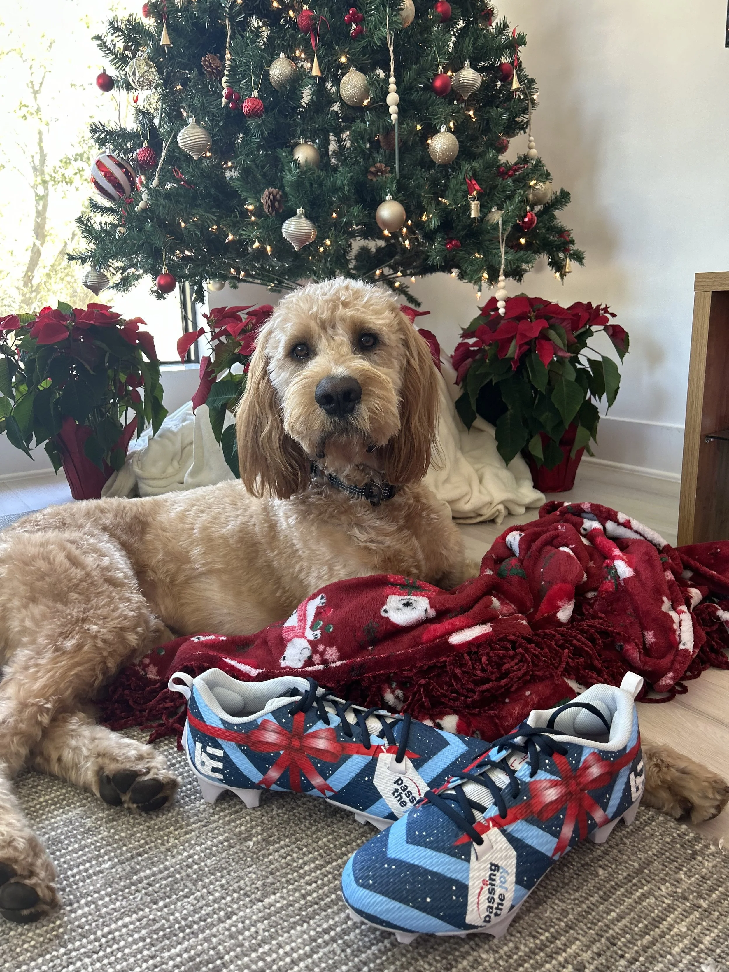 Fergus is the star of the show in the Mayfield household. He’s an Irish Setter Goldendoodle, born in early December 2021. Baker and Emily rescued him from a doodle shelter in Texas, and their worlds quickly became all about him.
